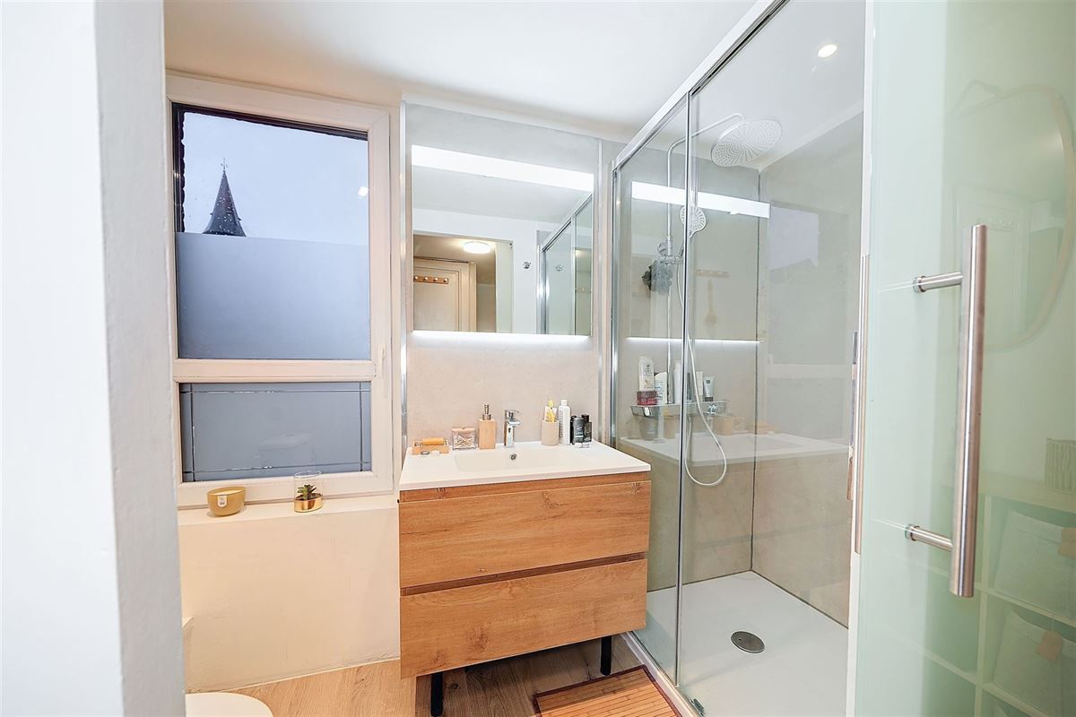 1er étage: palier, salle de douche de +/- 4m² et une chambre de +/- 16m². 2ème étage : chambre de +/- 17m² sous toiture. Sous-sol: cave de +/- 15m². Absence de jardin.