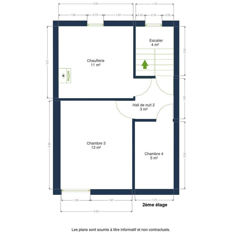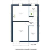 Le deuxième étage dispose d’un hall menant à une troisième chambre de ± 12 m², un bureau de ± 6 m², ainsi qu’un espace grenier.