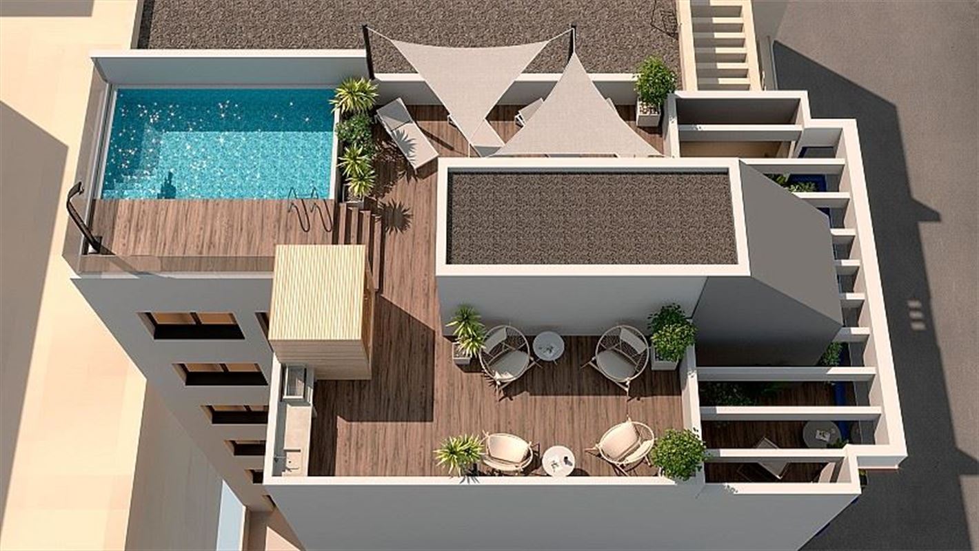 La terrasse sur le toit du bâtiment est conçue comme un espace commun haut de gamme avec piscine, terrasse ensoleillée, sauna et barbecue. Idéal pour profiter du climat méditerranéen de Torrevieja toute l'année.