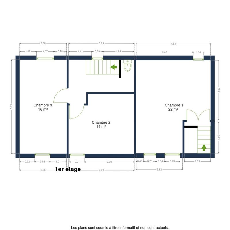 | Chambre 3 | 21.57 m² |