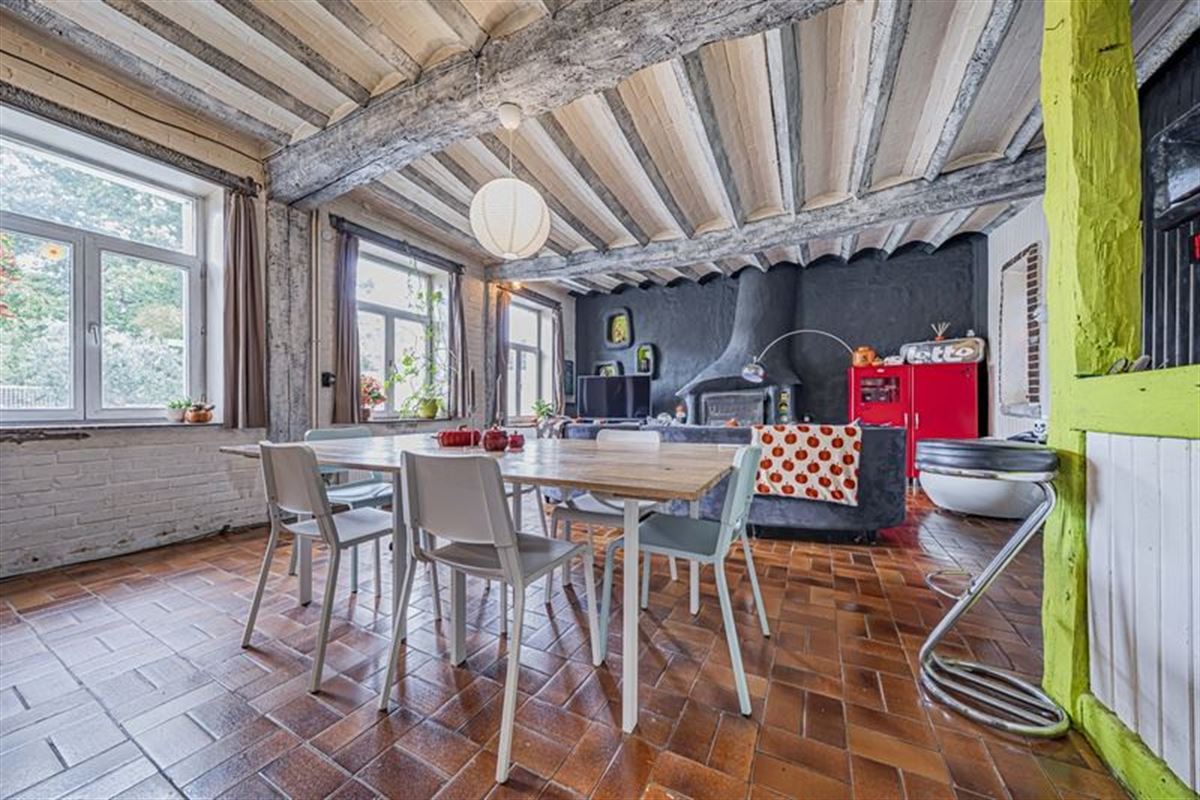 VISITES SUSPENDUES Située en recul de voirie au coeur de la campagne d'Houdeng Aimeries, maison de charme proposant 125m² habitables pour un total bâti de 170m², le tout sur un terrain de 5 ares 30ca. Ce bien un peu atypique vous offre à la fois une cour située à l'avant de la maison, une zone de manoeuvre et un magnifique jardin. La maison présente au rez-de-chaussée un hall d'entrée, un vaste séjour avec un superbe feu ouvert, une salle de douche et à l'étage, un hall de nuit avec wc et 3 chambres. D'un point de vue technique, CC gaz à condensation 2022, revêtement de toiture en tuiles terre cuite 2006, châssis équipés d'un double vitrage. Vous avez l'esprit un peu bohème, de nature libre avec un côté un peu artiste, cette maison est faite pour vous.