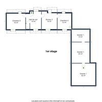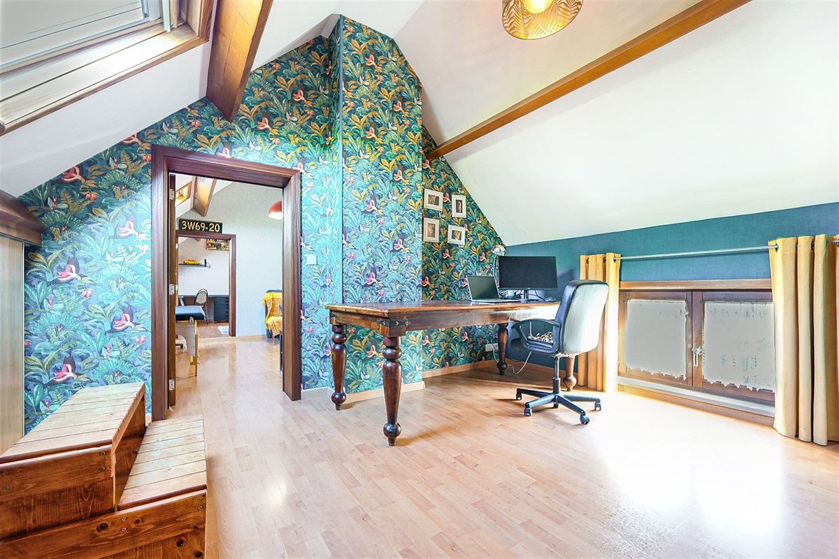 À l’étage : palier de distribution avec toilette, deux chambres supplémentaires (+/- 18 m² et +/- 14 m²) et une pièce intermédiaire de +/- 15 m², idéale pour bureau, salle de jeux ou chambre d’amis.