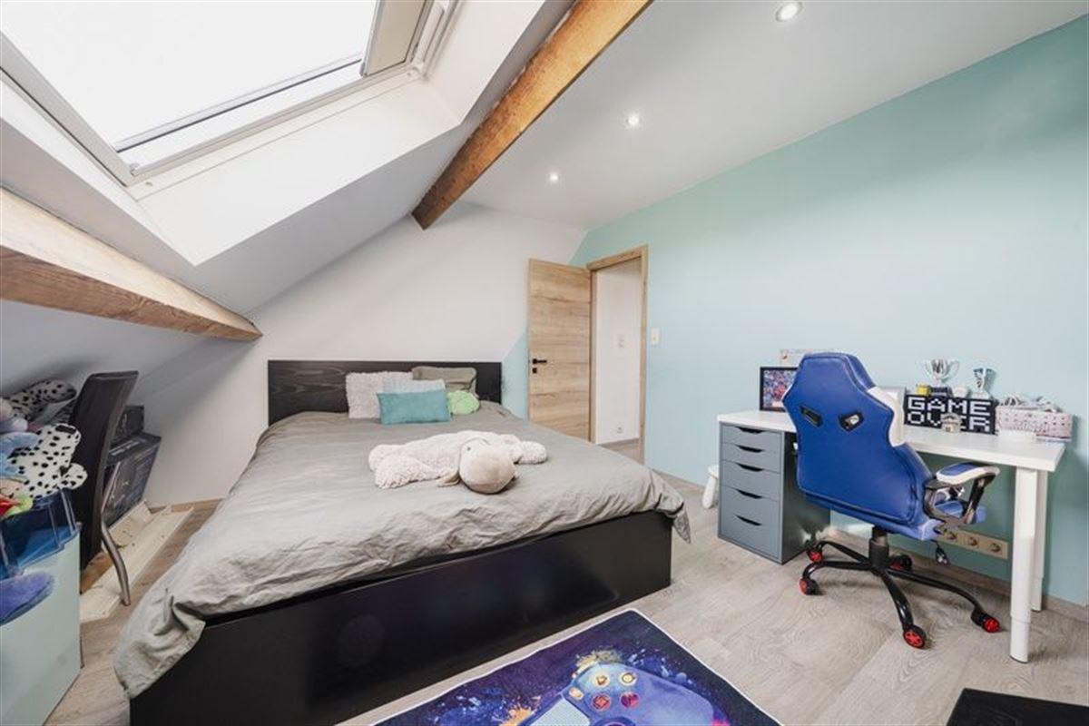 1er étage : le palier dessert deux belles chambres (+/- 20 m² et +/- 21 m²). Le 2ème étage accueille deux chambres supplémentaires (+/- 17 m² et +/- 18 m²), l’ensemble entièrement aménagé en 2021.