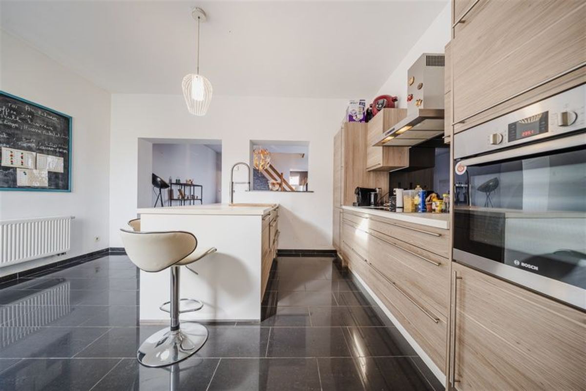 À l’extérieur vous découvrirez une agréable terrasse de +/- 40 m² orientée Est avec jardin entièrement clôturé.